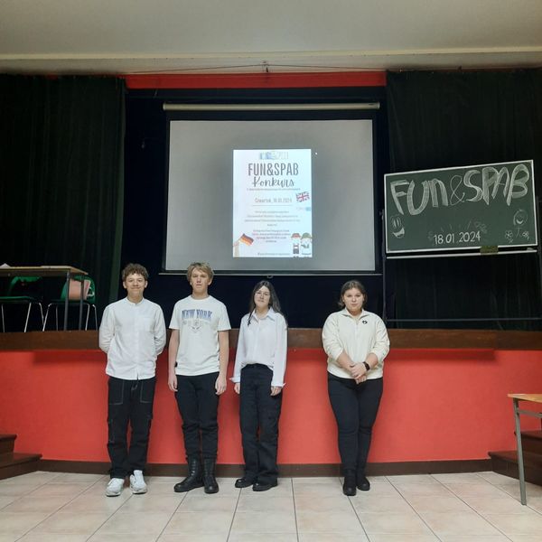Gratulacje dla Jakuba Gwiżdża i Oskara Pniaczka, którzy zajęli II miejsce w międzyszkolnym konkursie językowym 'Fun and Spa&’ zorganizowanym przez Zespół Szkół im Bohaterów Westerplatte w Jabłonce. Naszą szkołę reprezentowały dwie drużyny w składzie: Oskar Pniaczek i Jakub Gwiżdż oraz Karolina Farganus i Julia Kocur