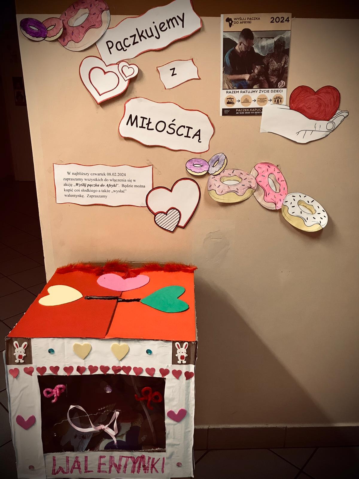 Dziś w naszej szkole odbyła się akcja „Pączkujemy z miłością”. Można było zakupić słodkości a zebrane pieniążki zostaną przekazane na pomoc dzieciom w Afryce. Dodatkowo wszyscy mogli ofiarować dobre słowo swojej „Walentynce” . Serdecznie dziękujemy za bezinteresowna pomoc pani Lidii Farganus, pani Bożenie Kupczyk oraz pani Barbarze Gwiżdż. Dzielmy się Miłością.