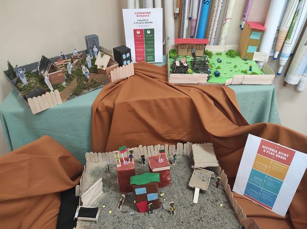Uczniowie klasy piątej zainspirowani lekturą „Chłopcy z Placu Broni” wykonali fantastyczne makiety, stanowiące wierne odwzorowanie Placu Broni. Każda z prac zawierała m.in.: sągi drewna, starą wozownię, tartak, budkę z desek, w której mieszkał Słowak pilnujący placu. Wśród tych elementów zostali umieszczeni bohaterowie. Gratulujemy pomysłowości i pracowitości.